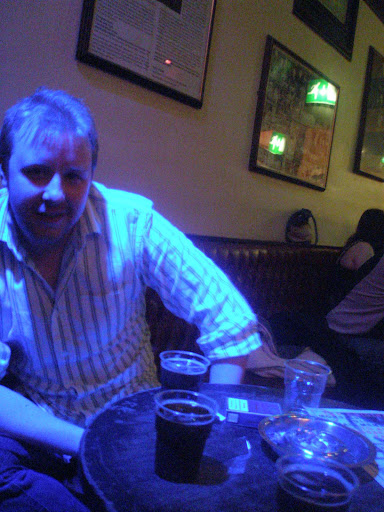 after exausting ourselves on the dancemat, we went for a pint and banter in a bar with glass walls